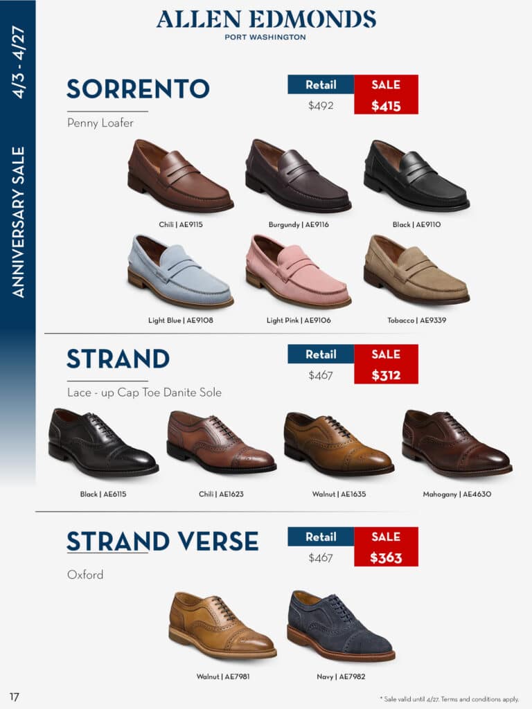Allen Edmonds’ Anniversary Sale is one of the brand’s most anticipated promotions because it often includes significant savings on signature styles. According to current sale coverage, the 2026 Anniversary Sale features discounts of up to 40% on selected footwear. That gives shoppers a chance to buy premium shoes at a better value, especially on classic styles that do not go on sale as often.