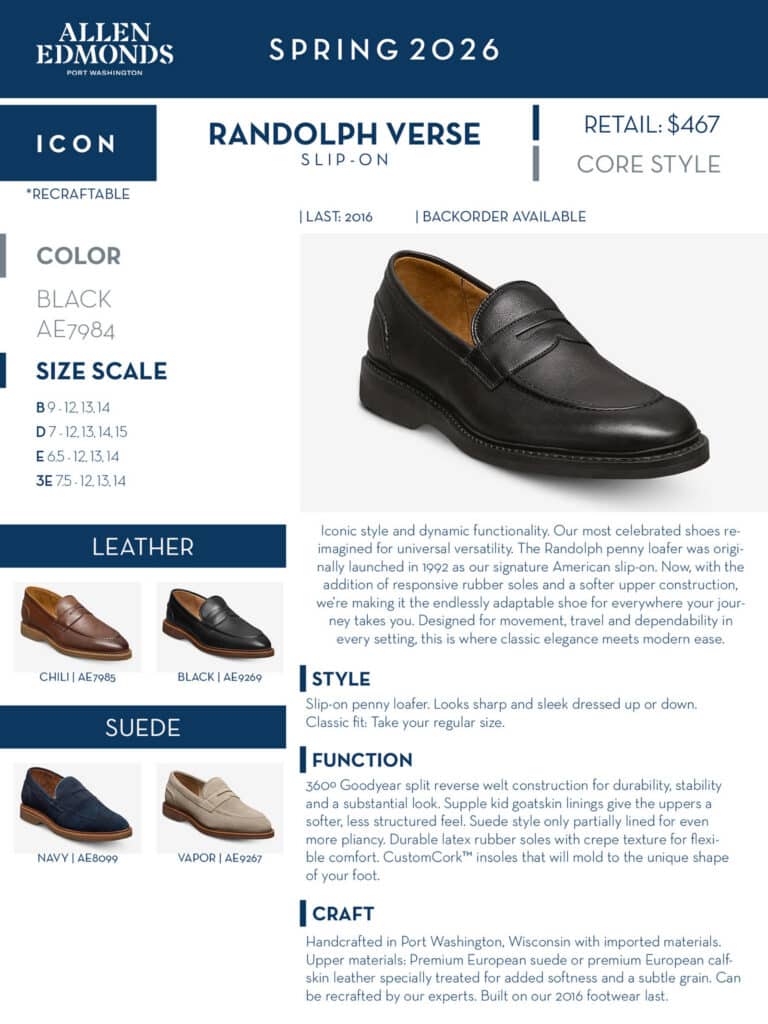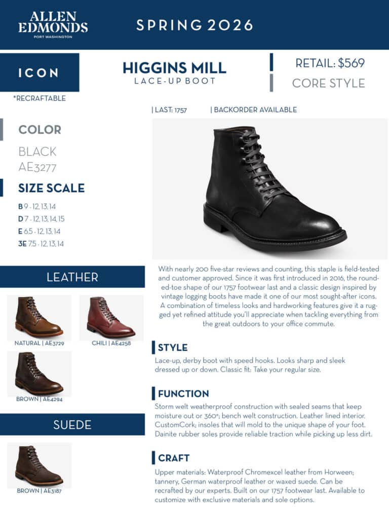 Allen Edmonds gained much of its following after providing shoes to the US Army and US Navy during World War II, with many of the recipients of the shoes being loyal to the brand for the rest of their lives. Allen Edmonds began handcrafting Made in U.S.A. shoes in 1922 on the shores of Lake Michigan in Wisconsin. Today we continue this manufacturing tradition and offer the finest men’s dress and casual shoes available featuring classic American styling and fine craftsmanship.